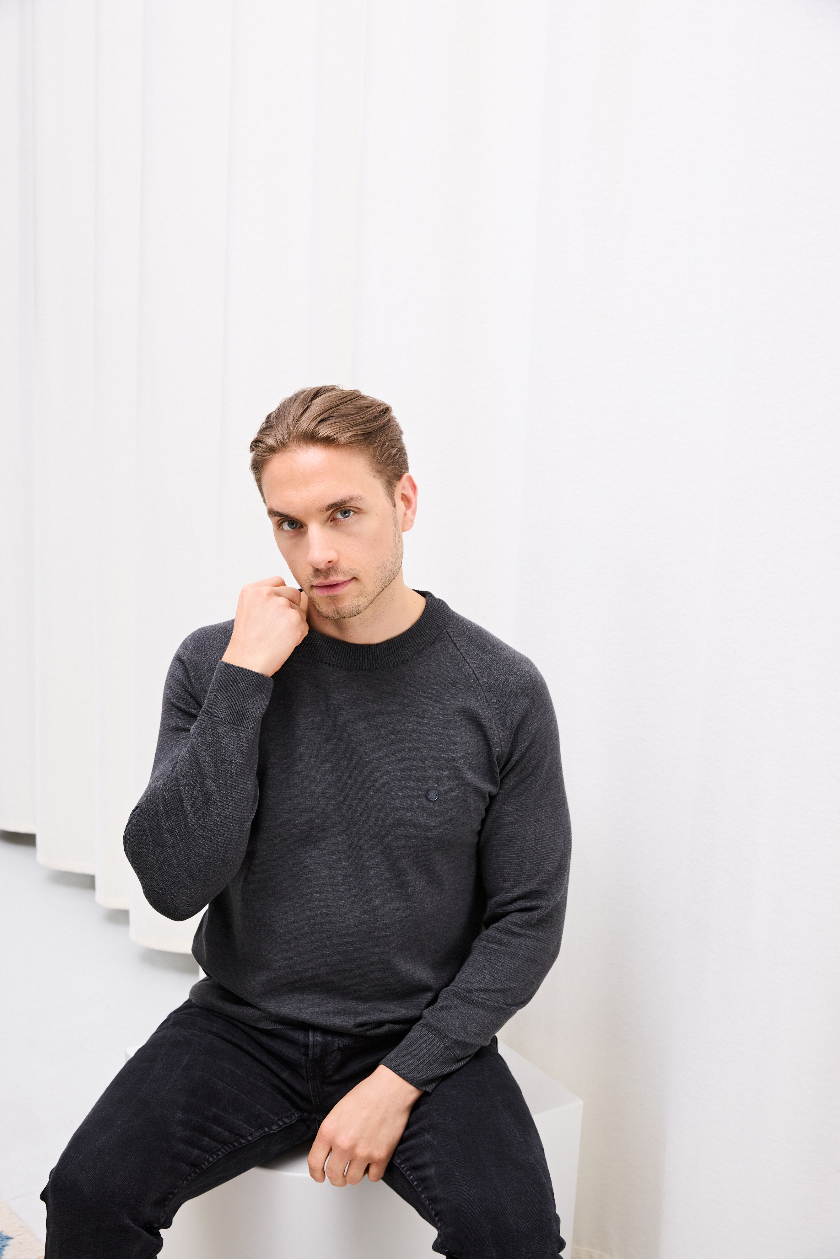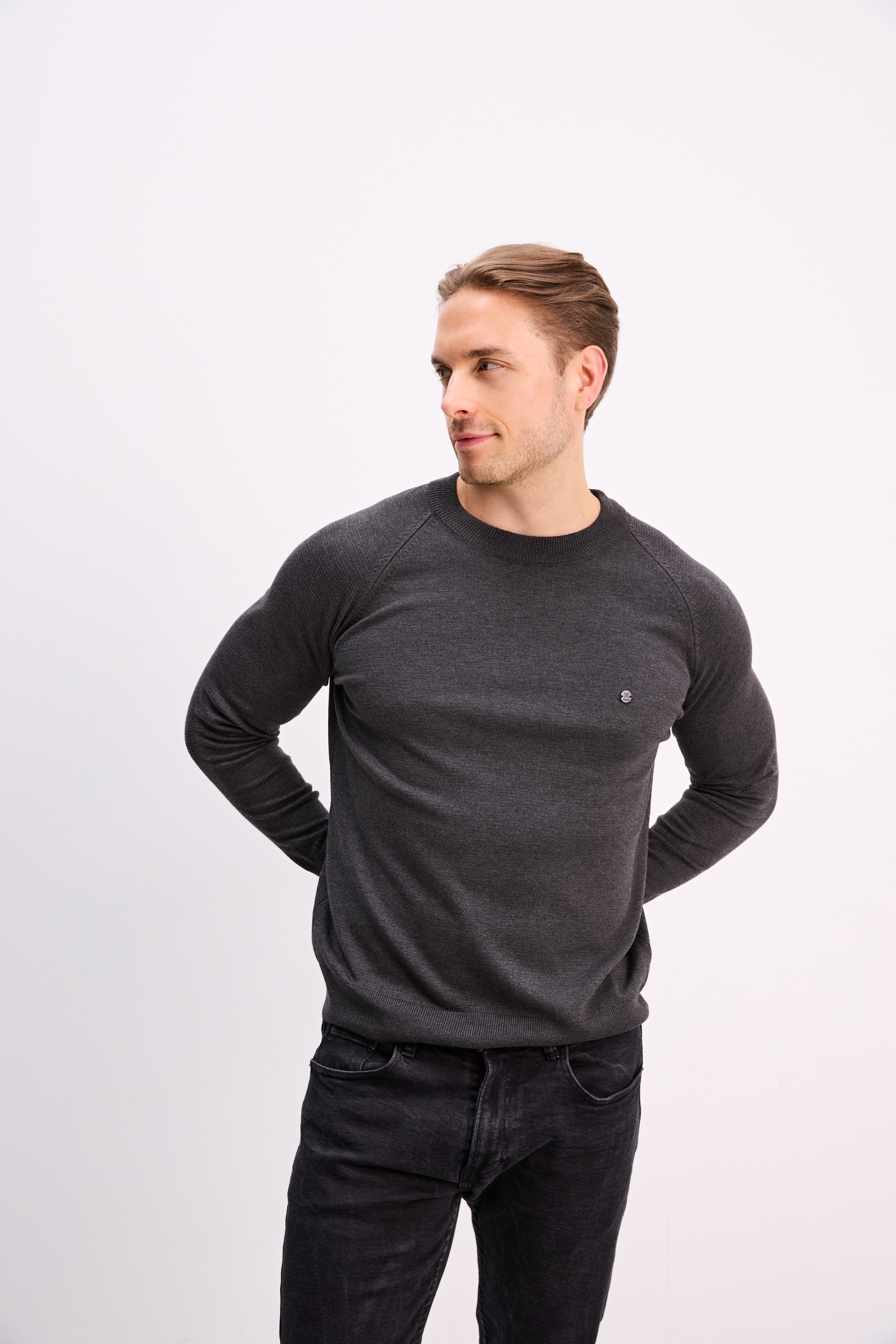 Feinstrickpullover mit Rundhalsausschnitt. Regular Fit. Anthracite
