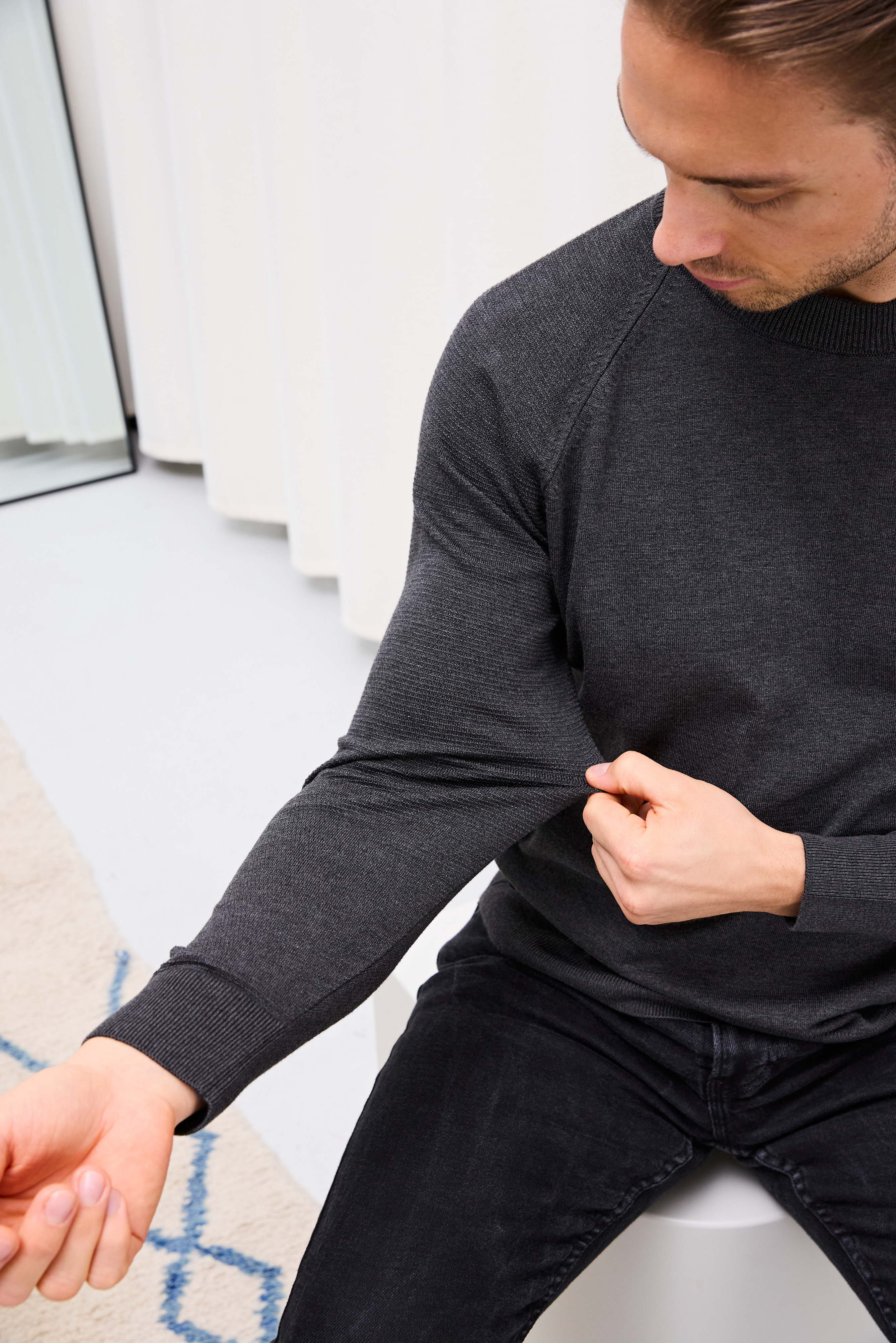 Das edle, farbtiefe Garn sorgt für ein angenehm weiches Tragegefühl durch einen feinen, gleichmäßigen Maschenverlauf. Elastisch an Ärmeln und Bündchen für den perfekten Fit. Mit authentischem Rippenstrickmuster am Ärmel und aufwendiger Nahtstruktur verleihen wir dem klassisch-eleganten Look eine Spur von Spritzigkeit.